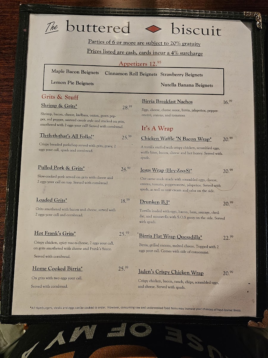 The Buttered Biscuit Menu